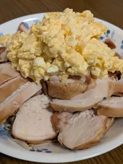 鶏ハム 鶏ハムに卵タルタルをつけていただきます。