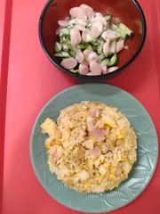 マヨネーズで炒めたマヨ炒飯、サラダをいただきました(*^^*)