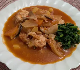 【ミネストローネ】『新たまねぎ』『にんじん』『じゃがいも』『大根』『れんこん』『キャベツ』『トマト』『しいたけ』『まいたけ』『しょうが』『鶏団子(新たまねぎ・パセリ・しょうが)』『昆布』『鰹節』『コンソメ』『ローズマリー』『パセリの芯』『パルメザンチーズ』『塩こしょう』『大根葉』【サラダ】『キャベツ