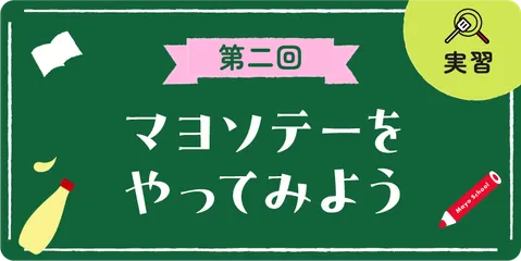 こんにちは、進行役の「えみ」です! 第一回の実習では、「まぜマヨ」を実践してきましたね。 キユーピー マヨネーズと好きな調味料や食材をまぜるだけで手軽に作ることができて、味わいのバリエーションがぐっと広がることをご紹介してきました♪ 今回の実習テーマは
