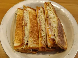 子どもたちとホットサンド作りました♡ 週末ランチにホットサンドを作りました(^^)食パンにマヨネーズを塗って、具材は目玉焼き·ベーコン·チーズ·千切りキャベツ♪お手軽美味しいメニューって嬉しい♡