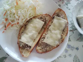 いわしのオープンサンド いわしの缶詰と、みじん切りの玉ねぎをマヨネーズで和えチーズを乗せて、トースターで加熱しました。
