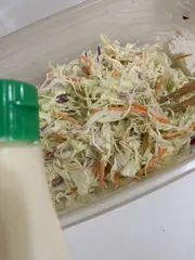 コールスロー カット野菜に甘酢、レモン、マヨネーズタッパーに入れて振ります🥰こちらはキューピーさんのレシピですキャベツがおいしいサラダ!コールスローの基本レシピ | とっておきレシピ | キユーピー