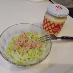 ザク切りキャベツにツナを加えてマヨ和え!パン、ご飯、お酒のあてにと万能な一品!!ちなみに今日はお酒のあてで😆
