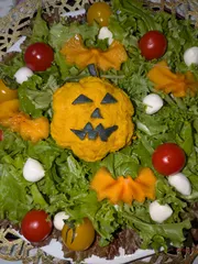 ハロウィン🎃 ハロウィン🎃なので、かぼちゃ🎃のサラダとかぼちゃ🎃のケーキを作りました。かぼちゃ🎃のサラダにマヨネーズをたっぷり使いました。カレーにターメリックライス。市販のかぼちゃ🎃プリン🍮です。