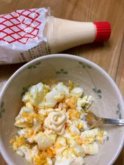 卵サラダ作りました 一度出して足りずに追加しました