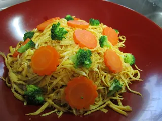 野菜の天ぷらの衣にマヨネーズを入れました。サツマイモとジャガイモ、ナス、ブロッコリーの芯を揚げました。サツマイモが甘くて、衣もサックリ揚がっていて美味しかったです😊