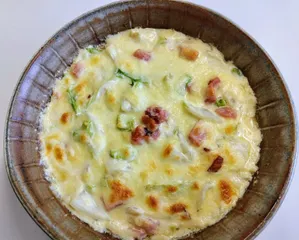 とろ~りふわふわ白菜の豆腐グラタン 今日の夕食。白菜の大量消費出来るキユーピーレシピで。絹ごし豆腐とマヨネーズを使って、とろ~りふわふわに仕上がり美味しく頂きました。白菜とウィンナーのマヨ炒め煮は、昨日の朝食に作って頂きました。🌻