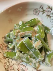 いんげんのマヨ和えを作りました。(いんげん、マヨネーズ、いりごま)