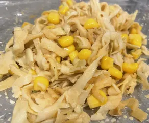 切干大根にスイートコーンを入れ、焼肉のタレとマヨネーズで和えました。