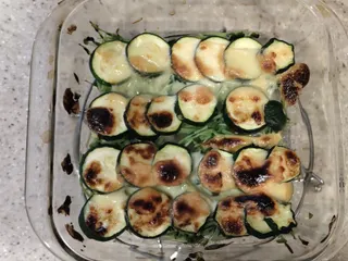 スライスしたズッキーニを少しレンジ過熱して、その後味噌マヨを塗って、チーズを散らしてグリルで焼きました。少しこげちゃったけどおいしかったです。