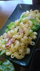 寒い日が再到来❄マカロニサラダ予定をマヨバターソテーに急遽変更しました。 ハム、マカロニ、チンゲン菜。マヨ&バターのコクで美味しくなっちゃうマジック🤭
