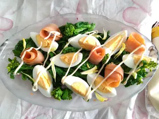 ミックさん🩷 もう菜の花が出ているのですね! スモークサーモンのお花も可愛い〜💕 ゆで卵もあって鮮やかですね✨ まるで、お花畑にいるようです💖 燻製マヨネーズがさらに美味しさをパワーアップしてくれていいですね🌟
