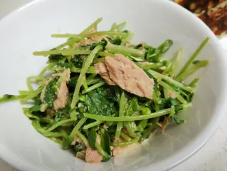 ●ごまポン酢マヨ和え、、豆苗とツナ●ブラックペッパーマヨ和え、、ちくわとスイートコーン●餃子