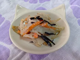 根菜とひじきをマヨ&ごまドレであえただけで秋っぽい色合いになりました🍁