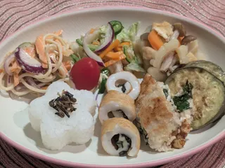 【明太マヨスパゲティーサラダ】【白菜の黒酢たまねぎドレッシングサラダ】【白ゴーヤの煮物】【賀茂茄子のソテー】【鶏ささみ肉のカツレツ(青じそとチーズ)】【ちくわ巻き(海苔とチーズ)】【ご飯(ほうじ茶の茶葉の佃煮)】 【ほうじ茶のチーズケーキ】【山梨県産 あかつき🍑】