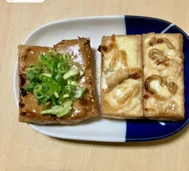 厚揚げがあったので作ってみたかったみかさんのチーズマヨ厚揚げ、みのりんさんの味噌マヨ厚揚げ作ってみました‼️ みのりんさんの味噌マヨ厚揚げ、みかさんのチーズマヨ厚揚げ︎💕︎︎💕︎ あぁ、全部おいしかったです❣️一人で食べちゃった(´>∀<`)ゝ チーズマヨ厚