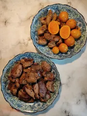 鶏レバー✨マヨで🪄✨フォアグラ化!? 鶏の心臓は切り開き、レバーはそのままで保存袋に入れマヨ漬け…玉ひもはトレーの中で軽くマヨもみ…さて、この実験はどうなる?!ドキドキ💗お湯を沸かして玉ひもを下茹で、日本酒と砂糖、醤油で煮付け…なんか卵(キンカン)がプニプニしてるから、蓋をしてしっかり煮たけど、やっぱりプニプニ弾力のある仕上り♪←マヨ無