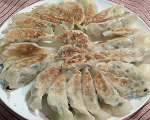 和歌山県産ビンチョウマグロのお刺身用短冊をミンチ状にして餃子を作りました🥟【ビンチョウマグロ餃子】『ビンチョウマグロ』『新たまねぎ』『にんじん』『にら』『九条ねぎ』『しょうが』『青じそ』『ごま』【マカロニサラダ】『マカロニ』『新たまねぎ』『にんじん』『きゅうり』『ゆでたまご』『ベーコン』