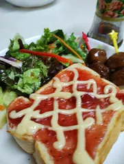 ジャムマヨトースト いちごジャムマヨトースト 10品目のサラダ レタスやパプリカ に テイスティドレッシング和風香味たまねぎ かけ ミートボール を頂きました