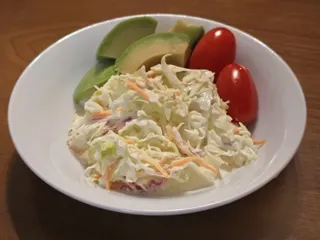 ツナ入りコールスローサラダ、アボカドと鮮やかなトマト添えられてとっても美味しそうです。🌻