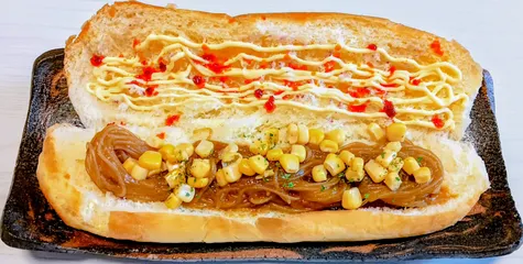 カレー春雨コッペサンド🥖 上側にマヨとサテトム、下側にカレー春雨とコーン、そしてサンド🫸🫷