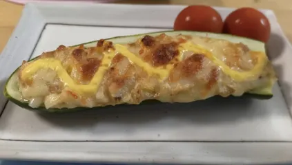 たくさんいただいたキュウリの中にズッキーニがあったので、キューピーさんレシピのズッキーニのツナマヨネーズ焼きを作ろうと意気込んで切ったら🔪キュウリ🥒でした😱💦端っこの感じも他のキュウリと違っていてズッキーニと思い込んでいたので、衝撃でしたΣ(-∀-;)💦急な変更は対応できないのでキュウリで作ってみま