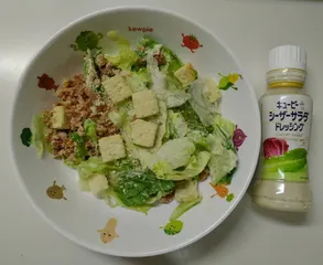 シーザーサラダを食べました 暑い時期にはドレッシングをたっぷりかけたシーザーサラダを食べたくなりますシーザーサラダドレッシングは奥深い味わいで大好きです