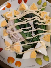 ほうれん草サラダ ほうれん草とたまご、マヨネーズでサラダが完成しました。