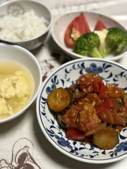 豚のヒレ肉を使ってラタトィユを作りました。ヒレ肉はサイコロ状にカットしてマヨをつけ小麦粉をまぶして焼き一旦取り出し、玉ねぎ🧅、ズッキーニ、ナス🍆、赤パプリカをマヨソテーしてからお肉とカットトマト🍅の水煮を加えて煮込みました。マヨソテーで酸味の角が取れて美味しくなりました。タマゴスープ🍲もマヨでフワッ