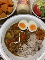 カレーライス 昨日の夕飯に作りました。我が家の定番、豚肉を使いました。 具材をマヨで炒めてから煮ました。