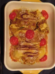 チキンをスパイスとマヨとヨーグルトで漬け込み、ポテトやトマトと共に更に盛り、表面にマヨを絞りパン粉を少々振りかけて、グリルします。具材に火が通り焼き目が付いたら出来上がりです。好みでチーズをかけて焼いてもコク旨で美味しいです。