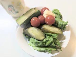 古漬けをトッピングサラダ🥗 美味しいきゅうりの古漬けを買ったのでピクルスみたいにサラダにのせてマヨで食べてみましたなかなか美味しかったです♪瓶マヨ大好き✨️