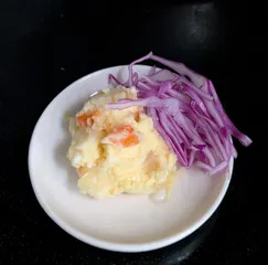 初めまして。家庭菜園のキタアカリにマヨネーズを付けて食べています。