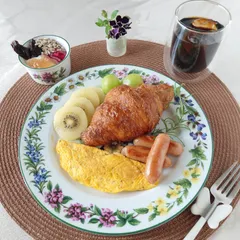 朝ごはん 朝ごはんのオムレツにマヨネーズを入れました😋ヨーグルトボウルとアイスコーヒーと一緒に頂きました😋💓