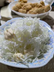 鶏むね肉のから揚げには、キャベツの千切り。
