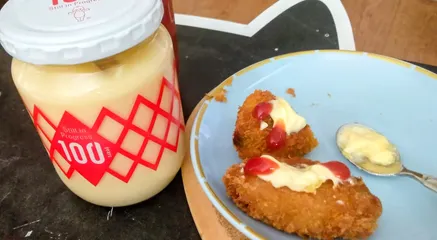 お昼はお惣菜の牡蠣フライにマヨネーズどーん!ケチャップちょん!スプーンに残ったマヨぱくり😋