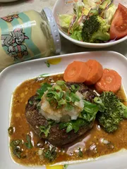 昨日の夕飯に久し振りに家族の大好きな和風ハンバーグを作りました。ハンバーグの具材にマヨネーズも混ぜ、ジューシーに焼き上がりました❗️にんじん🥕のグラッセとブロッコリー🥦も添えました。