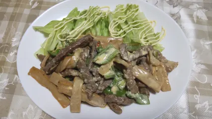 晩御飯 青椒肉絲のマヨ和えです