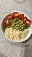サラダにはマヨ! ゆで卵にたっぷりマヨネーズ!ドレッシングは青じそにごま油がお気に入り⭐︎