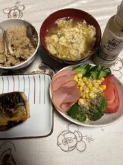 昨夜の晩ご飯は焼き魚。焼き魚に合わせて炊き込みご飯、汁物、サラダを作りました。卵汁の卵にマヨを少量入れてよく混ぜ水菜もいっしょに汁の中へ。ふんわり卵汁になりました☺️たっぷりサラダには深煎りゴマドレッシングの薬味ポン酢美味しく頂きました🙏