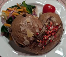 ハートがかわいい自家製いちご酵母のチョコパンですね いい香りが漂っていたでしょうね、食べたいな~ サラダとともに素敵な朝食ですね
