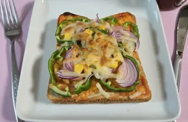 ピザポテトトースト🍕 マッシャーしたポテトにマヨとケチャップを混ぜたのを下にひいて、具材を乗せてトーストしました😊🍴