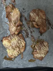 ウスターソース味 お昼に鶏もも肉をウスターソースで20分ほど漬け込み、グリルで焼いて仕上り数分前にマヨネーズをトッピングしました。