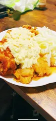 チキン南蛮 高校生の息子がマヨネーズたっぷりタルタルソース付きのチキン南蛮を作ってくれました😊めっちゃ美味かったです😋