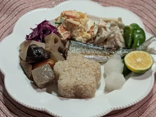 昨夜の夕食です☘️ 【紫キャベツのピクルス】 【ポテトサラダ】【ごぼうとれんこんのサラダ】【筑前煮】【秋刀魚の塩焼き】【万願寺とうがらし焼き】【大根おろし すだち】【玄米ご飯】