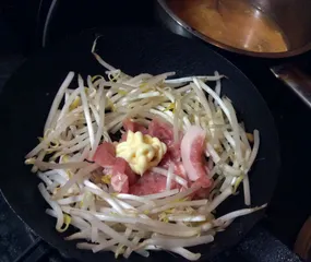 豚肉ともやしをマヨネーズで炒めました~♪