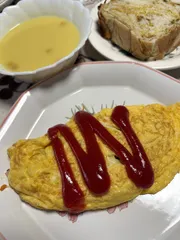 お昼にオムレツを作りました。玉ねぎ、にんじん、ピーマン、ハムをみじん切りにして先にマヨソテーしておき、マヨ入り卵をフライパンに流し半熟になってから具材ととろけるチーズをのせて卵で包みました。前日に焼いたカレーのパンとインスタントのコーン🌽スープと一緒に頂きました。