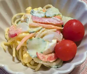 スパゲティサラダ♪ 四葉きゅうりが収穫できたので、スパゲティサラダを作りました🥗