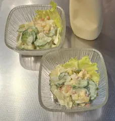 なんでもサラダ コールスロー風サラダですが、コーンとキュウリが多すぎて、キャベツの存在感が薄くなりました。